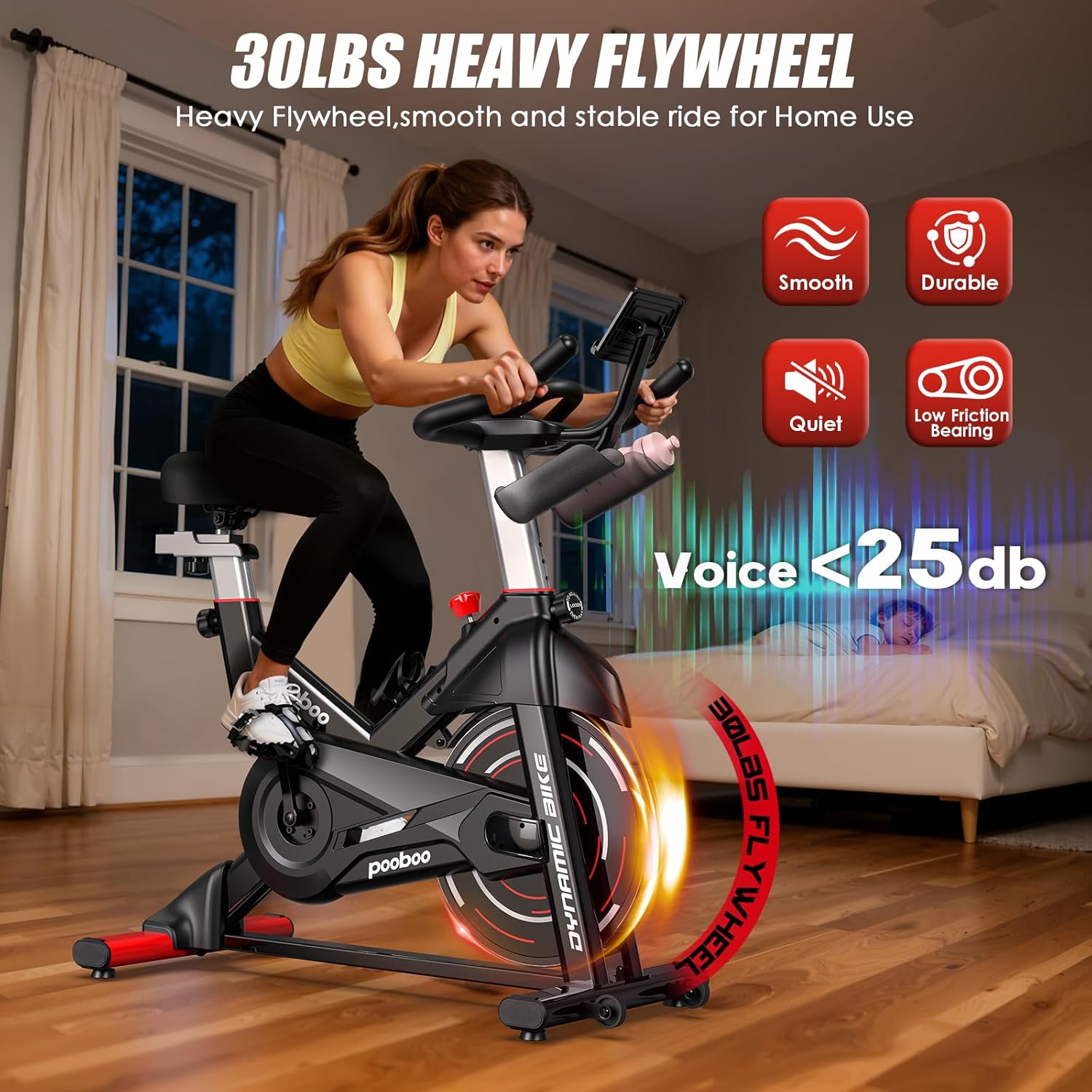 pooaboo Exercise Bike: Redefining the Home Fitness Experience Through Intelligent DesignIn today's crowded fitness equipment market, the pooboo exercise bike stands out as the ideal choice for those seeking a premium home workout experience. We understand that modern fitness enthusiasts want more than just exercise equipment—they seek an immersive, personalized, and consistently motivating fitness journey.pooboo seamlessly blends smart technology with exceptional craftsmanship, bringing global fitness experiences directly into your home through our exclusive fitness app. Whether you're challenging yourself on Alpine routes, finding motivation in live coaching sessions, or competing with friends on virtual courses, pooboo transforms every ride into an exciting adventure. This connected experience goes beyond traditional stationary bikes, making consistent exercise not just about willpower, but genuine desire.Precision engineering and human-centered design define every detail of our bikes. The 100-level micro-adjustable magnetic resistance system provides exact control over your training intensity, from gentle warm-ups to maximum effort, ensuring you always find the perfect resistance level. The unique triangular stability structure and 350-pound weight capacity maintain rock-solid stability during the most intense workouts, while operation below 25dB allows you to train anytime without disturbing family or neighbors.pooboo's inclusive design truly delivers "one bike for all family members." Multi-directional adjustable seats and handlebars easily accommodate users of different heights, from teenagers to seniors, with everyone finding their perfect riding position. The high-quality cushioned seat and adjustable pedals ensure comfort during extended rides while effectively preventing exercise-related discomfort.Understanding the value of modern living spaces, we've prioritized practical convenience in our design. The pre-assembled components and clear setup instructions get you riding in minimal time, while built-in transport wheels make space management effortless. Whether in an apartment, home office, or living room, pooboo integrates perfectly into your living environment.Choosing pooboo means more than selecting excellent exercise equipment—it means gaining a fitness partner that understands your needs. It represents our commitment to uncompromising quality, continuous innovation, and dedication to every user's health journey. Here, exercise transforms from a mundane task into an enjoyable exploration—every ride brings you closer to a healthier, happier lifestyle where fitness becomes a sustainable pleasure rather than a daily challenge.